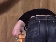 Caned over tight jeans Daddy boy