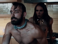 Busty shemale Jade Evans asslicks and barebacks her stepdad