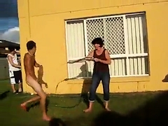 Tirando a roupa do loirinho a forca